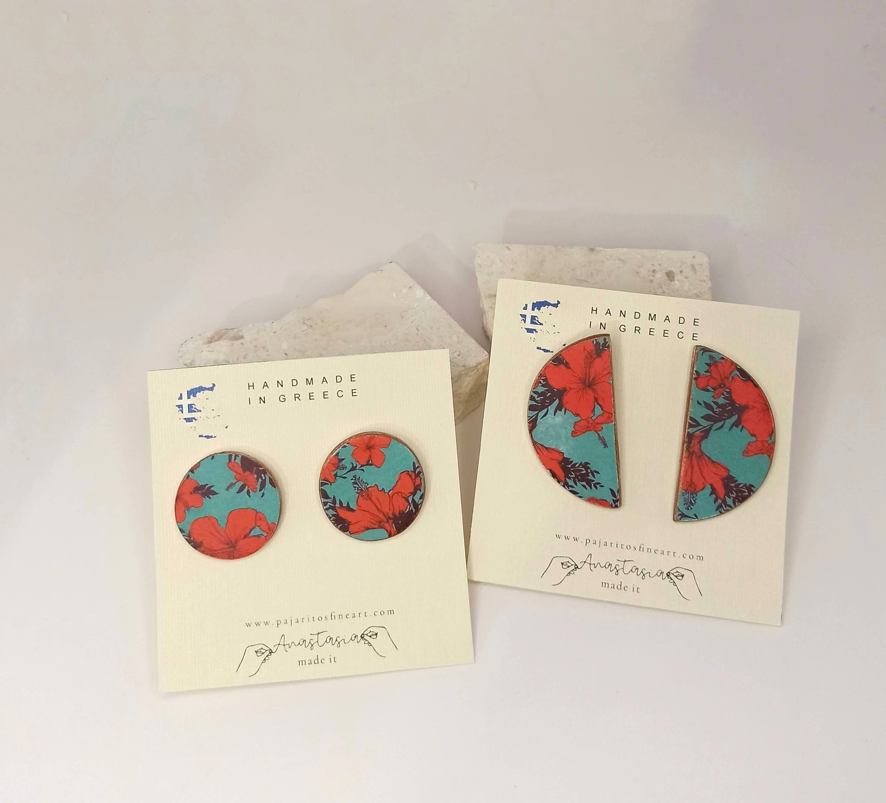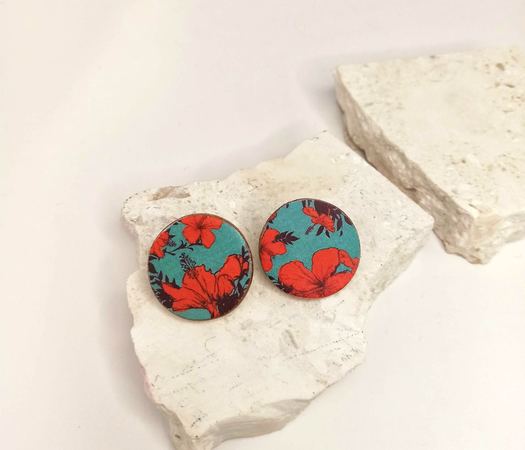 Χειροποίητα σκουλαρίκια, καρφωτά Vivienne από πηλό, διακοσμημένα με εκλεπτυσμένο floral μοτίβο σε αποχρώσεις του μπλε και του κόκκινου. Εμπνευσμένα από ρετρό πορσελάνες και κλασικά μοτίβα, προσφέρουν έναν διακριτικό, vintage χαρακτήρα που ταιριάζει σε κάθε περίσταση.