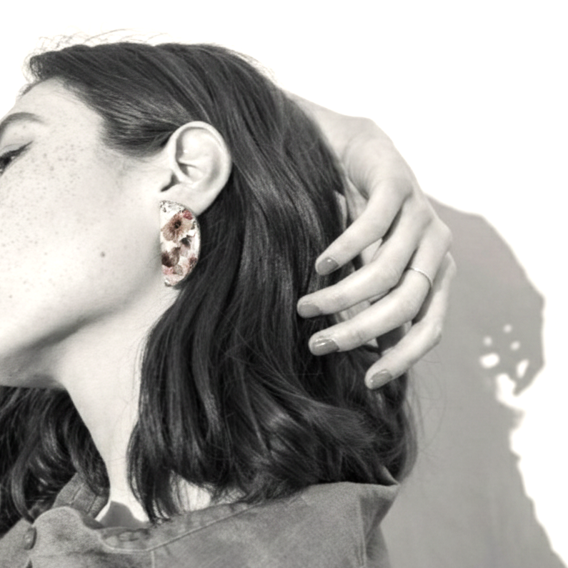 Τα Ether σκουλαρίκια είναι χειροποίητα από πηλό με μεγάλα λουλούδια, σαν να ξεπήδησαν από σελίδα ημερολογίου ή πίνακα ζωγραφικής. Απαλά στην υφή και ντυμένα με ματ φινίρισμα. Ρομαντικά, διακριτικά και πάντα γλυκά για να συμπληρώσουν την εμφάνισή σου!