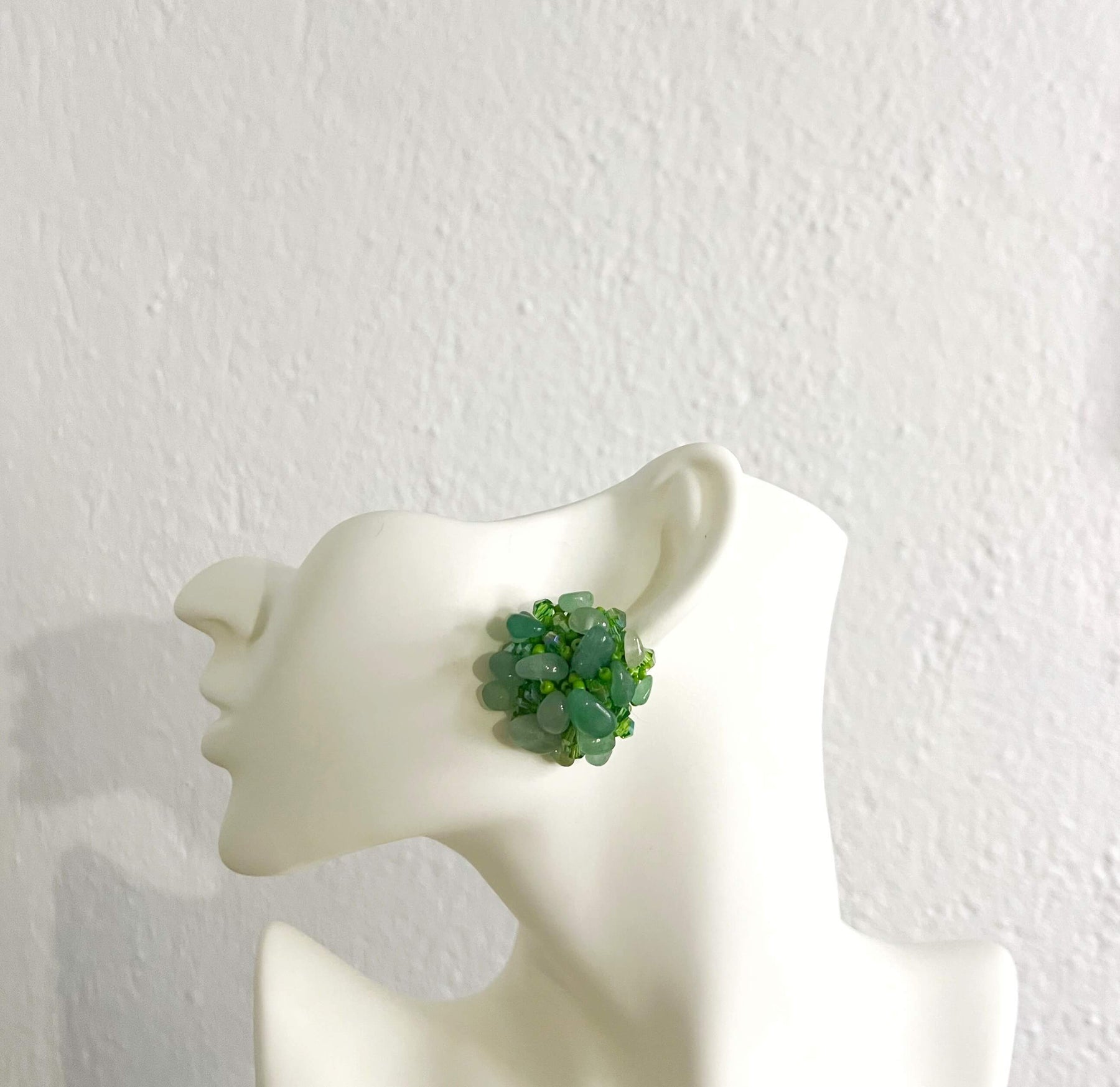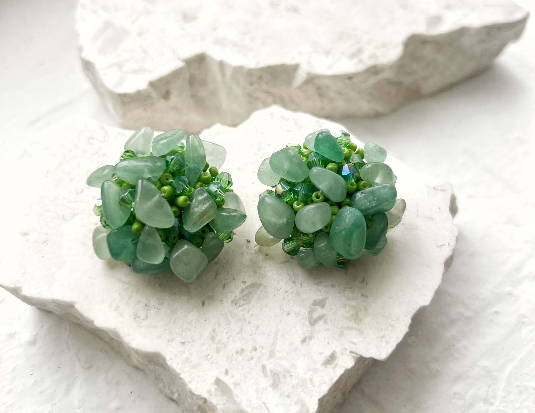 Χειροποίητα σκουλαρίκια Emerald με πράσινες-φυστικί, κρυστάλλινες χάντρες που θυμίζουν δροσοσταλίδες. Κάθε τους λεπτομέρεια αποπνέει ηρεμία και φυσική ισορροπία, ιδανικά για γυναίκες που αγαπούν τα χειροποίητα σκουλαρίκια με φυσική έμπνευση, boho αισθητική και διαχρονική κομψότητα.