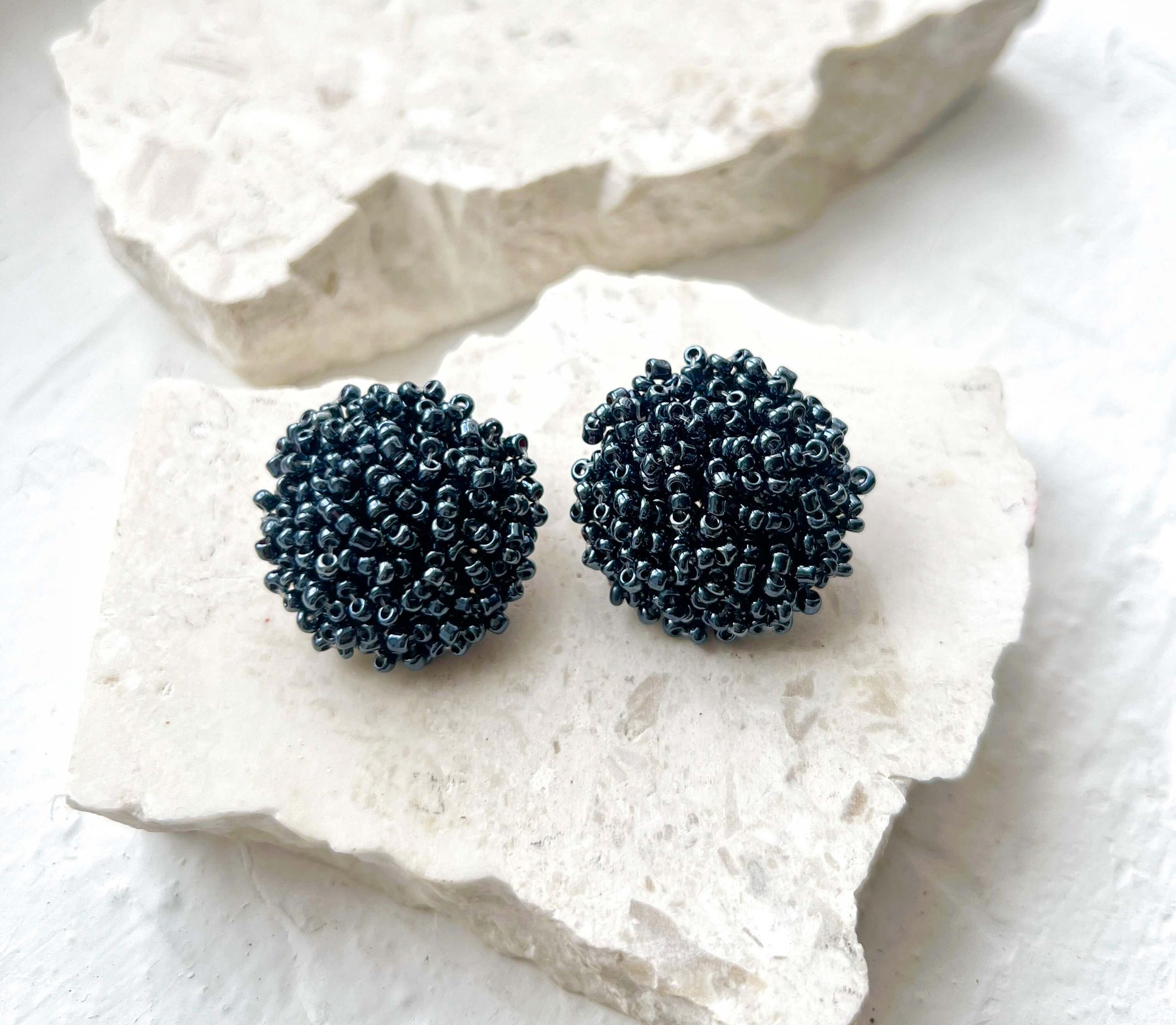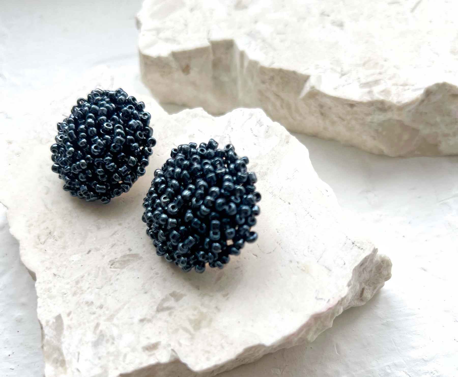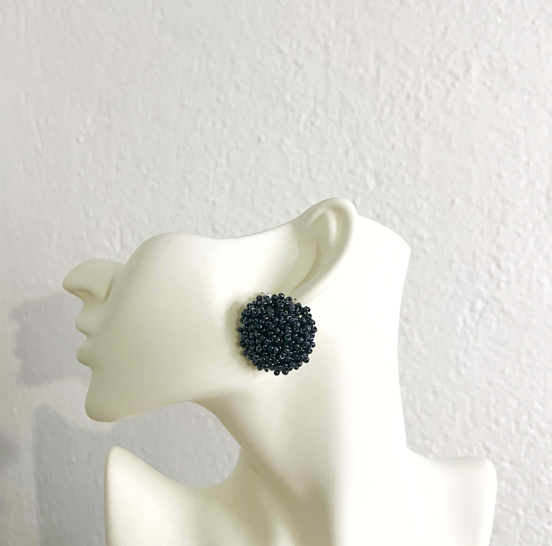 Καρφωτά χειροποίητα σκουλαρίκια Lea σε βαθύ μαύρο χρώμα, πλεγμένα από χάντρες miyuki που χαρίζουν κομψότητα και μυστήριο. Ιδανικά για βραδινές εξόδους ή για γυναίκες που αγαπούν τα minimal αλλά δυναμικά κοσμήματα.